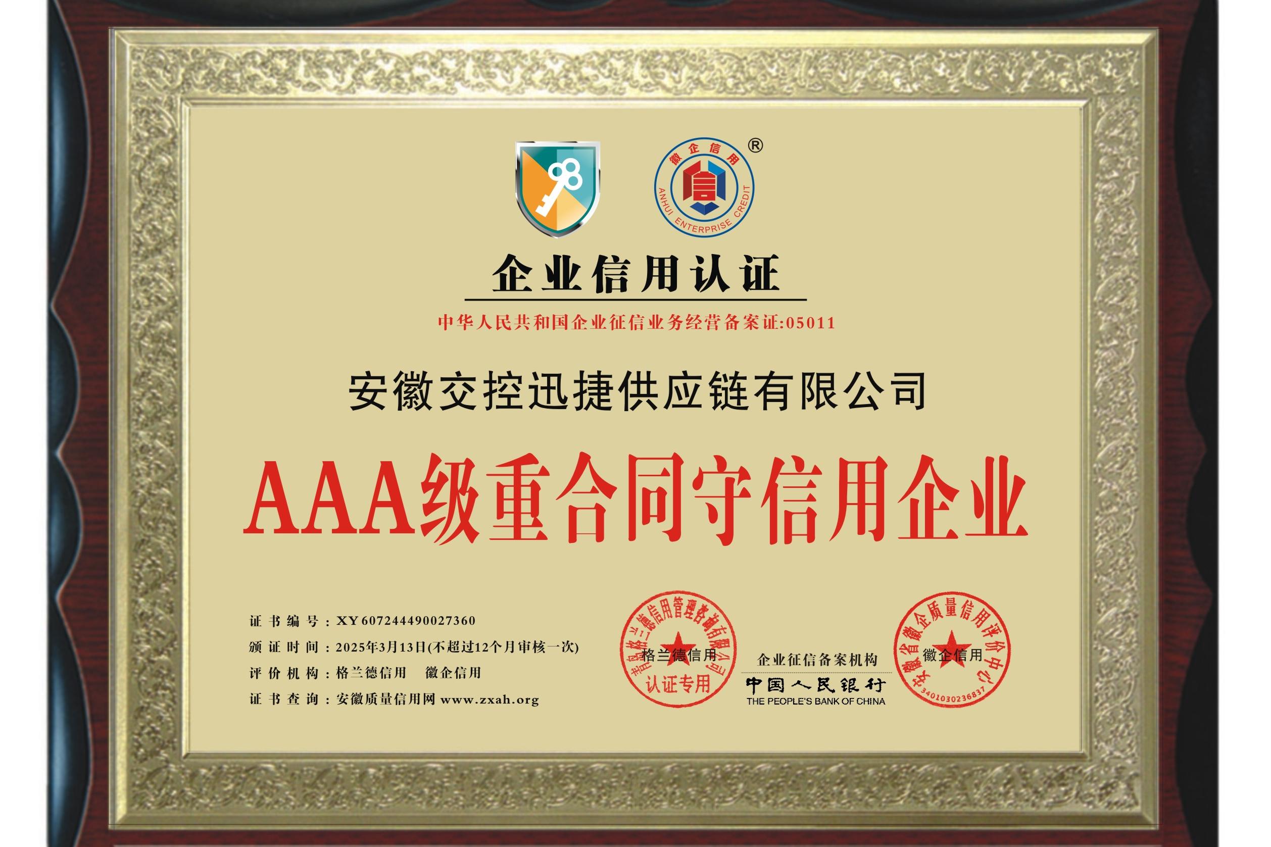迅捷供應鏈公司獲評“AAA級重合同守信用企業(yè)”